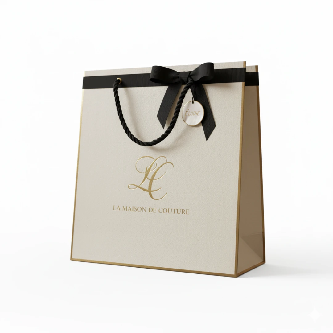 Elegant Christmas Paper Shopping Bag With Gold Foil Logo For Gift Packaging And