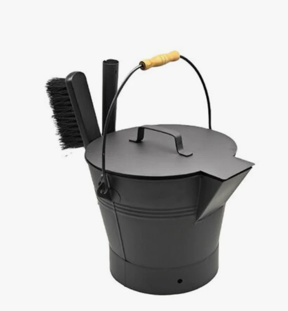 Ash Bucket with Lid Includes Firepit Shovel Broom 2 Gallon Fireplace Metal Charc
