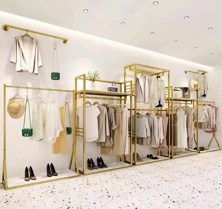 Custom Garment Store Furniture Boutique Heavy Duty Golden Clothes Stand Women's