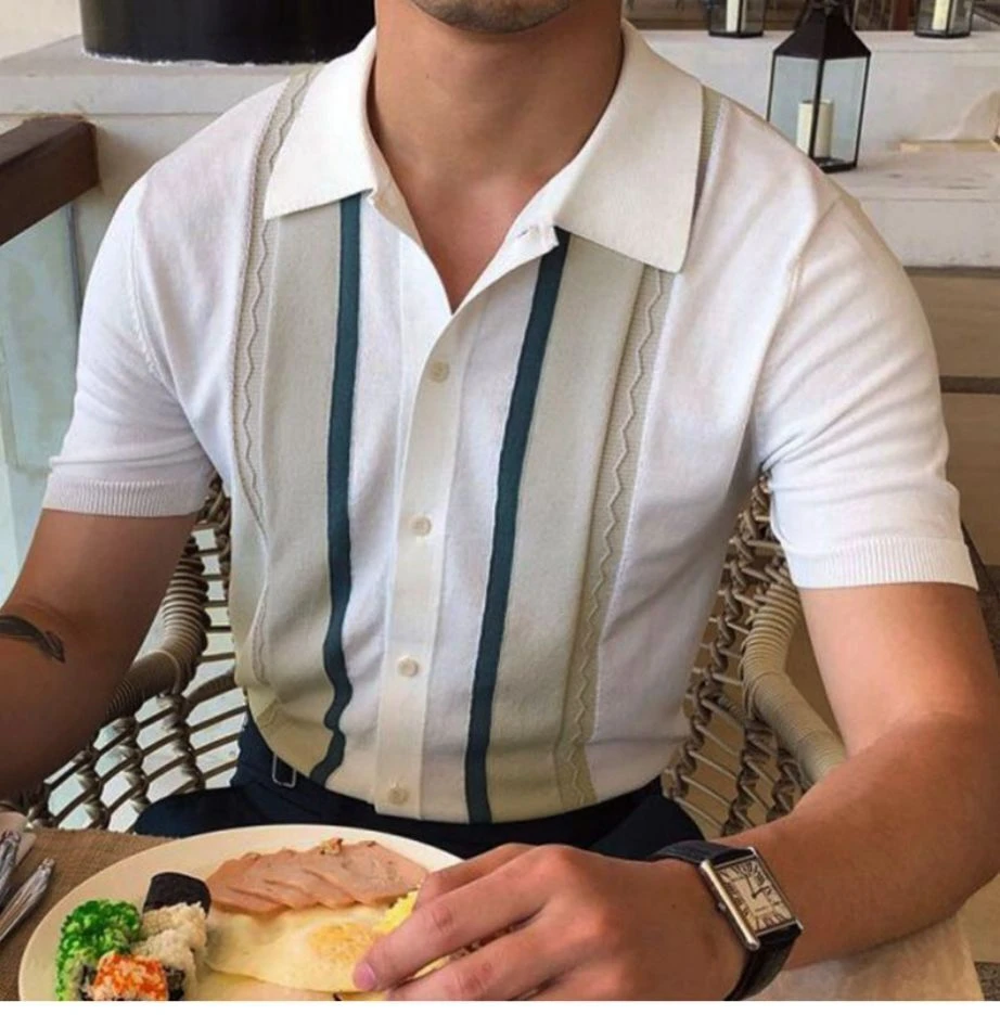 Summer new design men's knitted lapel pullover casual striped polo shirt for men