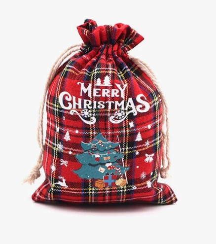 Hot Sale Christmas Plaid Cotton Cloth Bundle Pocket Christmas Candy Drawstring B